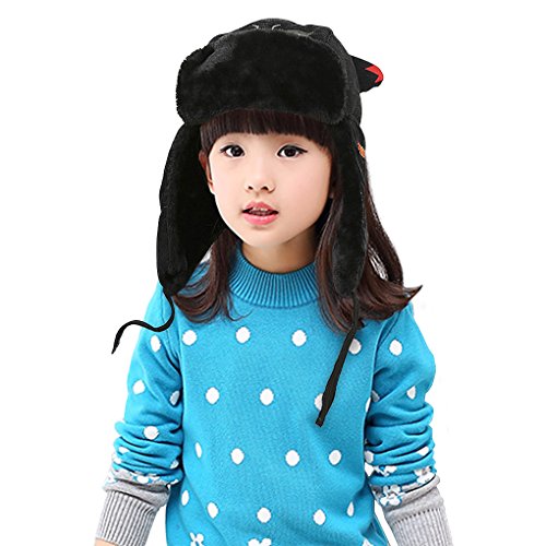 帽子 キッズ 冬 パイロット風 耳あて付き かわいい 動物模様 親子帽子 厚手 あったか 防寒帽子 飛行帽 子供用 女の子 男の子 黒 アウトドア 外遊び ボンバーハット パイロットキャップ 防風 保温 お洒落 新年 プレゼント 52-55cm 3-8歳