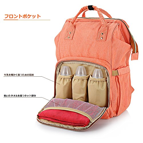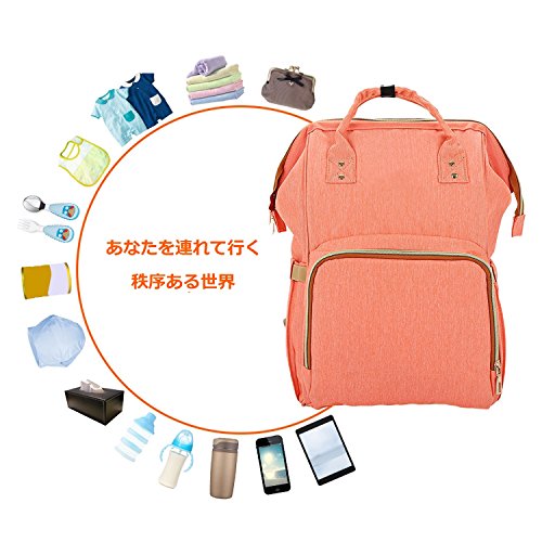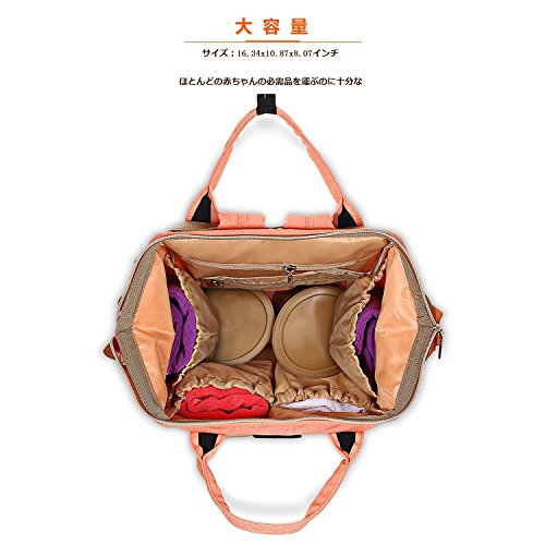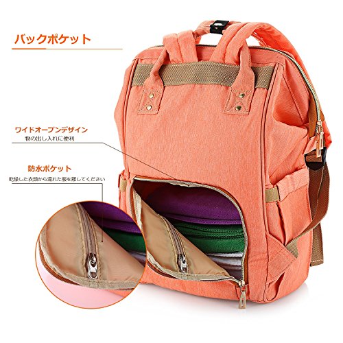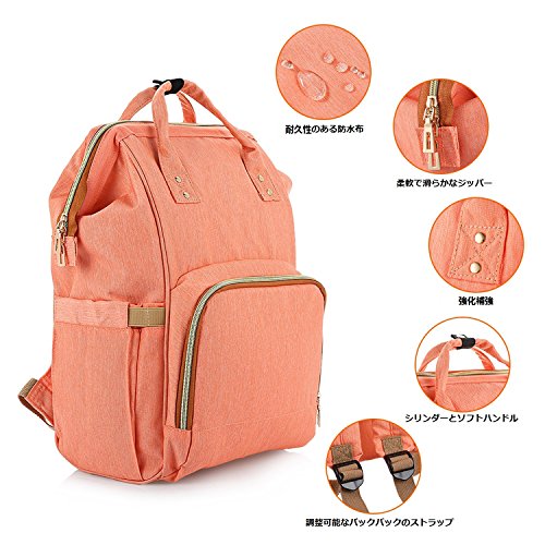 LYJPのおむつバッグ多機能防水旅行のバックパックおむつケア、大容量、スタイリッシュで耐久性のあるバッグ (オレンジ)
