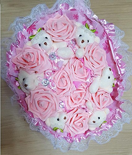 LYLE ライル ハンドメイド くま束 熊束 ベア ブーケ 造花 ぬいぐるみ 白 結婚式 結婚記念日 出産祝い 誕生日 プロポーズ ギフト (ピンク)