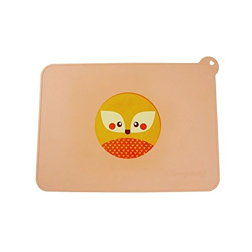 シリコンテーブルマット 長方体食事マット 多機能 子供用 折り畳みやすい 柔らかい 耐腐蚀性 耐熱性パッド 変形しや裂けない 無毒無味 食欲促進 安全と環境にやさしい ハート型設計する 八種可愛いアニマル柄 (べージュ(キツネ))