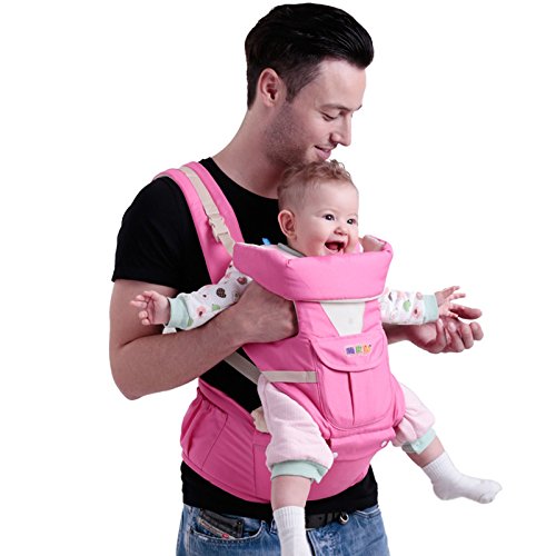ベビー抱っこ紐 高い通気性 O脚の形成に防止 ベビーキャリア H型肩紐 もっちり肩滑べ止め臀部シート付き 多機能 柔らか 調節できる ポケット付き 子供お出かけ用品 (ピンク)