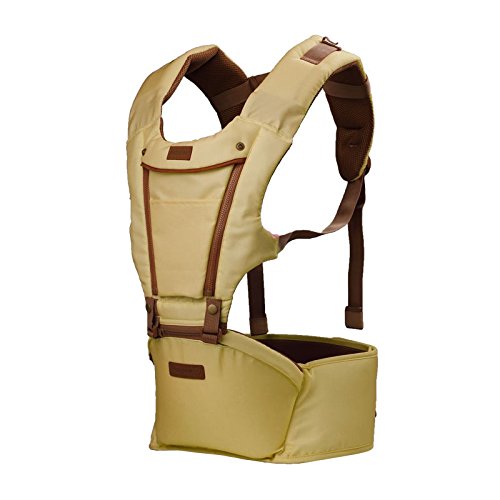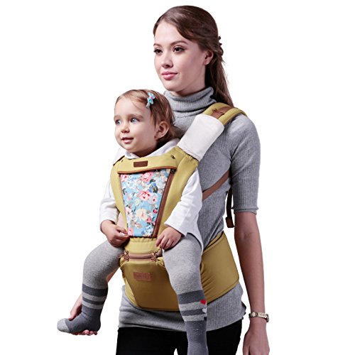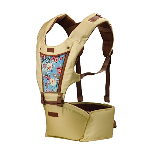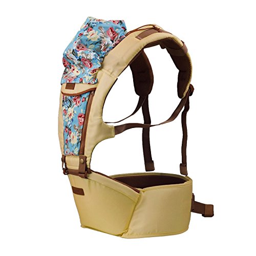 ベビー抱っこ紐プリント柄 赤ちゃんの姿勢とママの負担を軽減させるために作られた新しい抱っこひも もっちり肩滑べ止め臀部シート付き 高い通気性 柔らか 調節できる ポケット付き (きいろ)