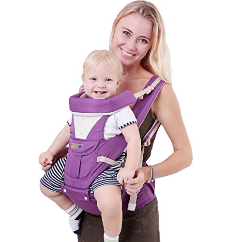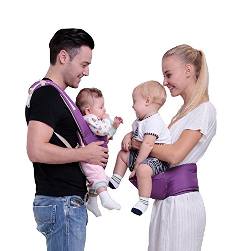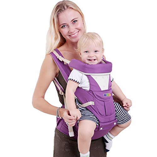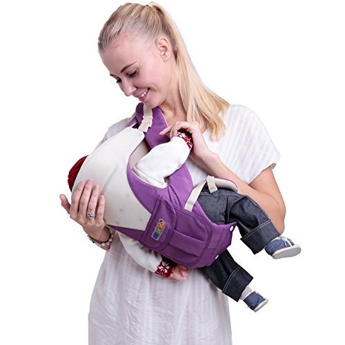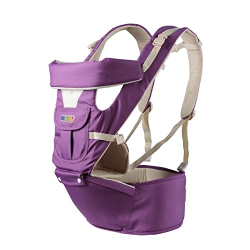 ベビー抱っこ紐 コットン製 多機能 四季款 赤ちゃんの姿勢とママの負担を軽減させるために作られた新しい抱っこひも もっちり肩滑べ止め臀部シート付き 高い通気性 柔らか 調節できる ポケット付き 透湿性 新生児抱っこ紐 (パープル)