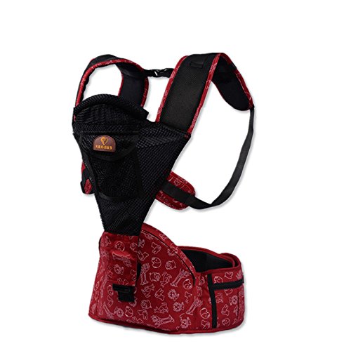 ベビーキャリア 赤ちゃん抱っこひも コットン+風通しの良いメッシュ 多機能 安全で快適 安全なバックル 強い粘着力のあるマジックテープ ファスナー設計 180℃回転バックル フリーサイズ 調整可能 耐荷重25kg 人間工学設計 外出が便利 オールシーズ使用可能 (レッド)
