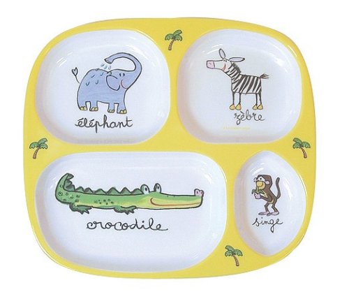 - ゾウやサルなどジャングルのかわいい動物達のイラストのメラミン製プレートです。