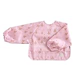 ラシェーズロングのお食事用エプロンです。下部の裏側の布地をひっくり返せば、前面にぽっこり張り出した袋ができて、食べこぼしをキャッチ。袖を通して着るタイプ(背面はマジックテープ留め)だから、お洋服を汚すこともずいぶんなくなるハズ♪また、このエプロンは洗濯できるのもうれしいポイント。