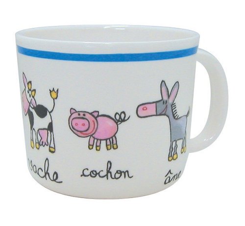 - ウシやニワトリなど牧場のかわいい動物達のイラストのメラミン製マグカップです。