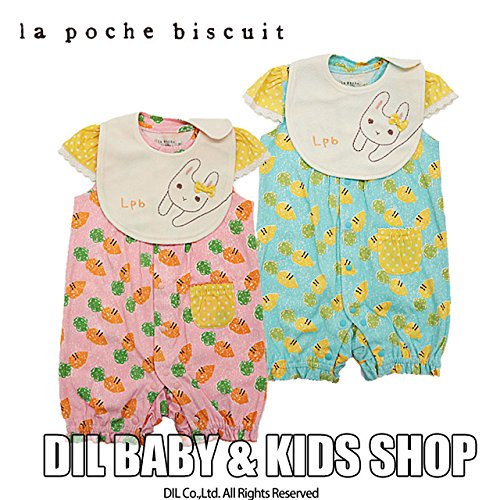 (ラポシェビスキュイ) La poche biscuit ms4 にんじん柄半袖グレコ+うさぎ柄スタイ 80 サックス