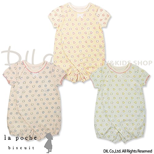 (ラポシェビスキュイ) La poche biscuit 初夏'16/アイレット花柄半袖ロンパース 80 ピンク