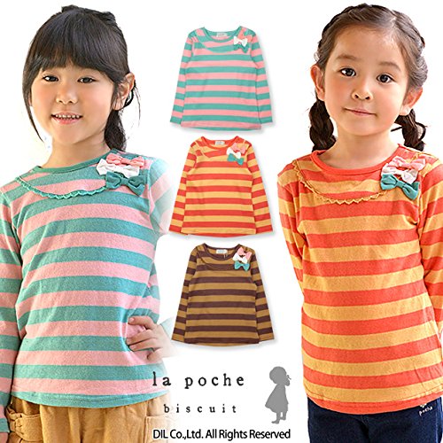 (ラポシェビスキュイ) La poche biscuit 秋'15 リボンモチーフワイドボーダー長袖Tシャツ 90 ブラウン