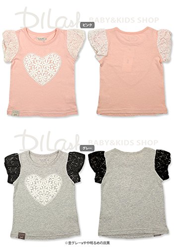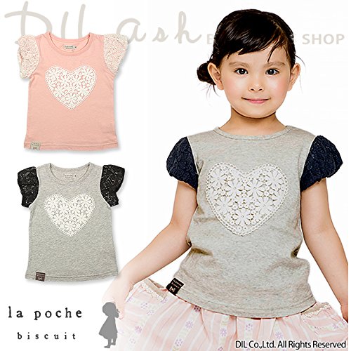 (ラポシェビスキュイ) La poche biscuit 初夏'16/バルーンスリーブハートモチーフ半袖Tシャツ 80 グレー