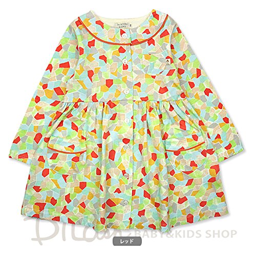 (ラポシェビスキュイ) La poche biscuit幾何学柄ワンピース/ 春 姉妹お揃い ワンピ 100 レッド