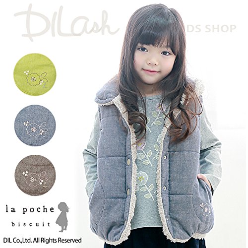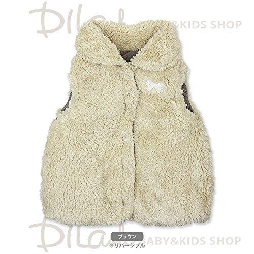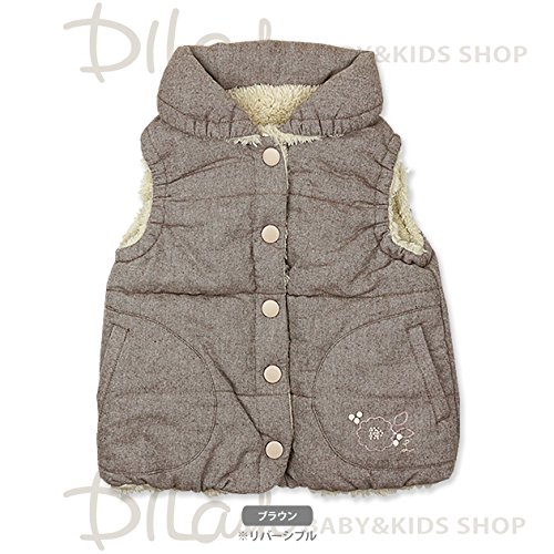 (ラポシェビスキュイ) La poche biscuitダンガリー&ボアリバーシブル中綿ベスト/ 秋 80 ブラウン