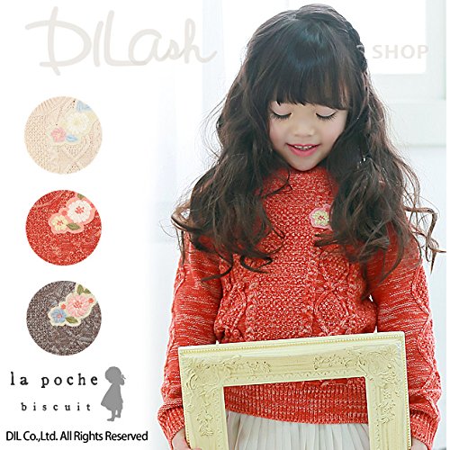 (ラポシェビスキュイ) La poche biscuit2色撚り糸横編みセーター/ 秋 120 レンガ