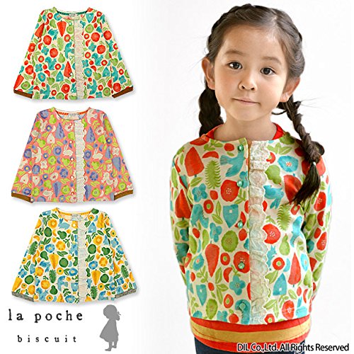 (ラポシェビスキュイ) La poche biscuit 秋'15 小鳥とお花のカーディガン 110 サーモンピンク