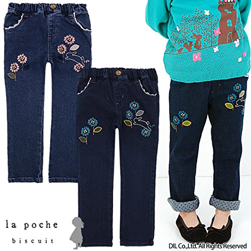 (ラポシェビスキュイ) La poche biscuit 秋'14 お花刺繍ストレッチデニムパンツ 80 ネイビーブルー
