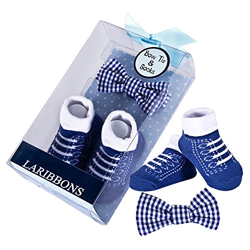 LaRibbons ベビー ボーイ ソックス & 蝶ネクタイ 新生児 赤ちゃん ギフト セット (セット 3)