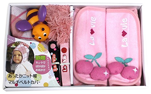 LaVie ギフトBOX 4点セット ベルトカバーチェリー&ニット帽アーガイル 水鉄砲ホーネット オモチャホルダーBKピンク b084