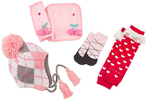 LaVie ギフトBOX 4点セット ベルトカバーチェリー&ニット帽アーガイル レッグウォーマーレッドラブリー ピンクハートソックス b089