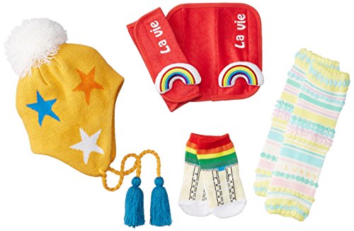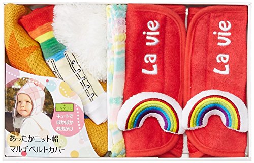 LaVie ギフトBOX 4点セット ベルトカバーレインボー&ニット帽イエロースター レッグウォーマーマルチマシュマロ アーバンキャンバスソックス b092