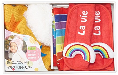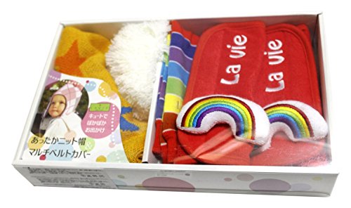 LaVie ギフトBOX 3点セット ベルトカバーレインボー&ニット帽イエロースター レッグウォーマーレインボー b109