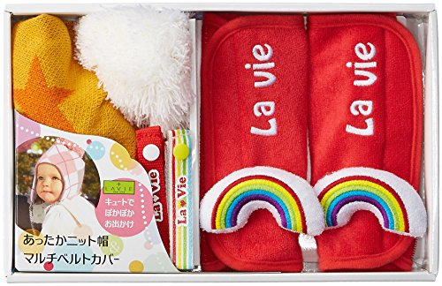 LaVie ギフトBOX 3点セット ベルトカバーレインボー&ニット帽イエロースター オモチャホルダーレインボー b123