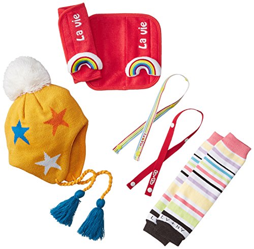LaVie ギフトBOX 4点セット ベルトカバーレインボー&ニット帽イエロースター レッグウォーマーアーバンボーダー オモチャホルダーレインボー b155