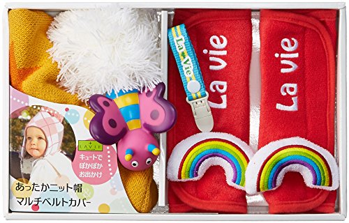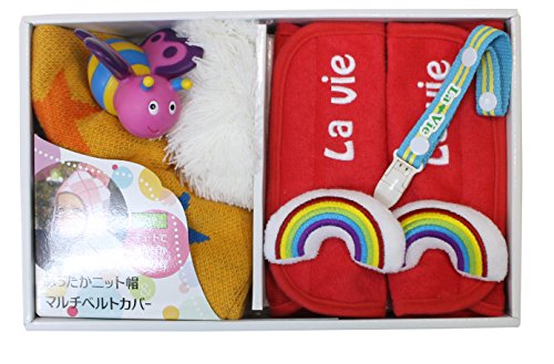 LaVie b164ギフトBOXベルトカバーレインボー&ニット帽イエロースターに可愛いおしゃぶりホルダーブルーラインと水鉄砲ビー付きのラグジュアリーギフト