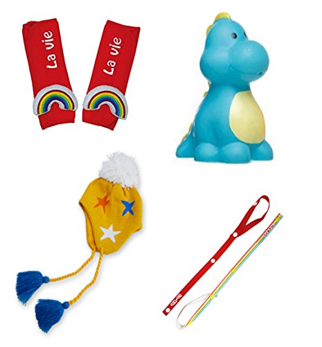 LaVie ギフトBOX 4点セット ベルトカバーレインボー&ニット帽イエロースター 水鉄砲ブラキオ オモチャホルダーレインボー b171