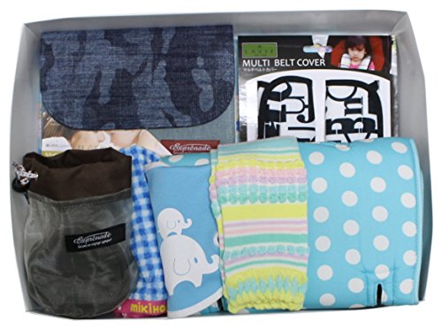 - [セット内容・付属品] 和柄ガーゼタオル ブルー、ベルトカバー メトロポリタン、ベビーシート ブルー、ミキハウス今治フェイスタオル、エクスプレナード母子手帳ケース ブルーカモ、マルチホルダー ベージュメッシュ、ラヴィオリジナルビブ ブルー、Lavieレッグウォーマー マルチマシュマロ