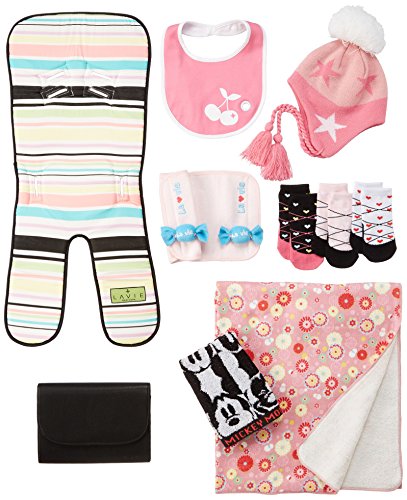- [セット内容・付属品] 京都発和柄タオルPK、ベルトカバーキャンディ、ベビーシートアーバン、エクスプレナード母子手帳ケースPUブラック、ミッキータオル、ラヴィオリジナルビブピンク、LVNYソックスリボンハートセット、ニット帽子ピンクスター