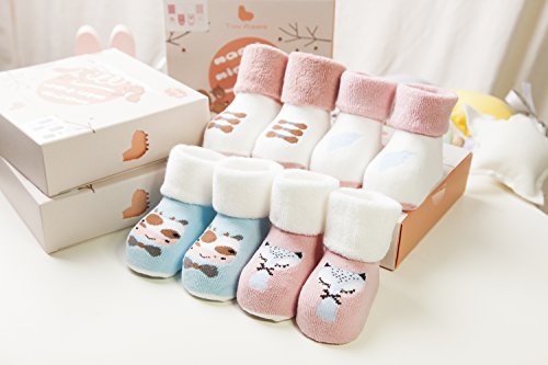 LAVIE 4足セット 可愛い ソックス 靴下 男の子 女の子 子供 白 ピンク 青 紺 くつした 綿 秋冬 XS(0-1歳)