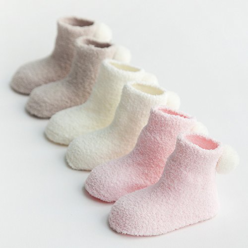 LAVIE 3足セット 新生児 可愛い ソックス 靴下 男の子 女の子 子供 綿 秋冬 ピンク ホワイト コーヒー色 3色 S(6-12月)