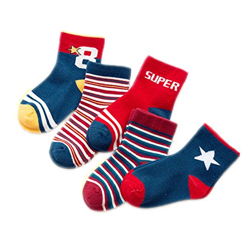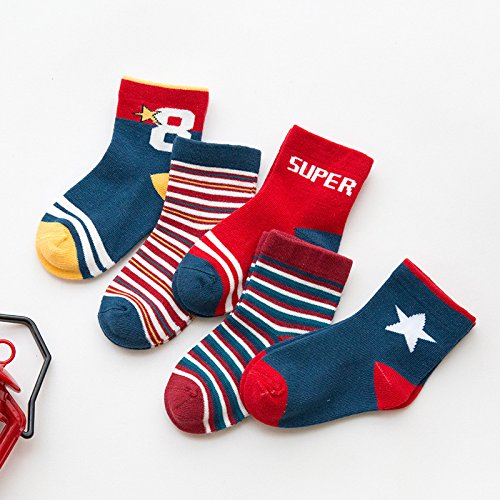 LAVIE 5足セット 可愛い ソックス 靴下 男の子 女の子 子供 綿 秋冬 ネイビー S(1-3歳)