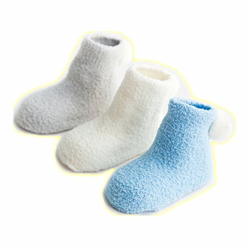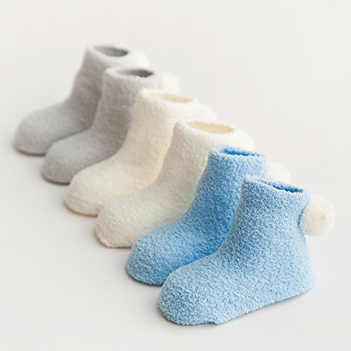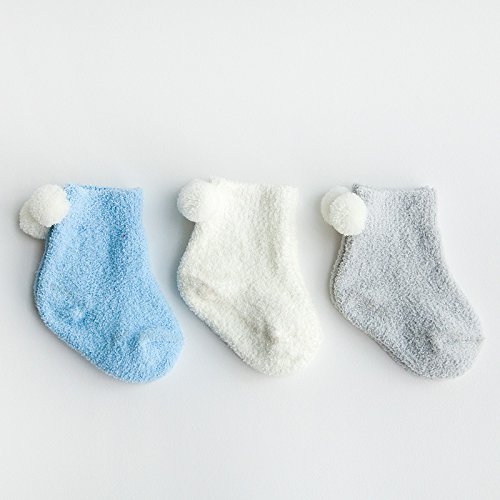 LAVIE 赤ちゃん ベビー 3足セット 可愛い ソックス 靴下 男の子 女の子 綿 秋冬 ブルー ホワイト グレー 3色 S(6-12月)