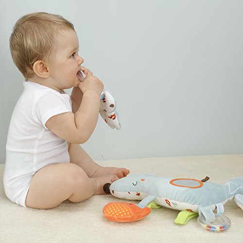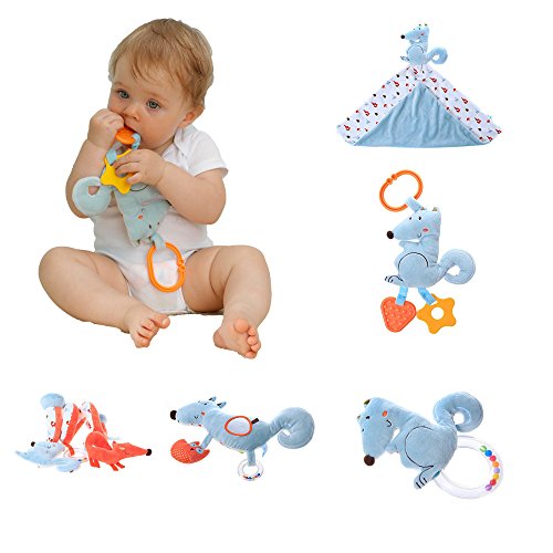 Labebe ベビー用癒しタオル+スピンおもちゃセット 赤ちゃんのおしゃぶりぬいぐるみおもちゃ 歯がため付き 幼児のクリエイティブな誕生日プレゼントとしてもオススメ! - 4個ブルーリス+1個オレンジフォックス 5個セット