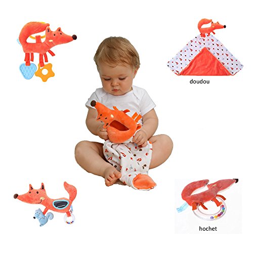 Labebe ベビー用癒しタオル+スピンおもちゃセット 赤ちゃんのおしゃぶりぬいぐるみおもちゃ 歯がため付き 幼児のクリエイティブな誕生日プレゼントとしてもオススメ! - オレンジフォックス 4個セット