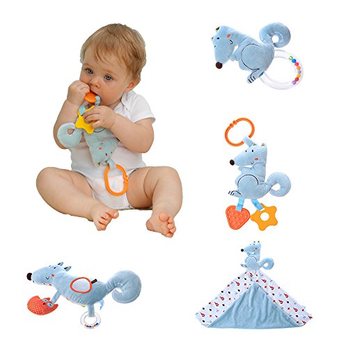 Labebe ベビー用癒しタオル+スピンおもちゃセット 赤ちゃんのおしゃぶりぬいぐるみおもちゃ 歯がため付き 幼児のクリエイティブな誕生日プレゼントとしてもオススメ! - ブルーリス 4個セット