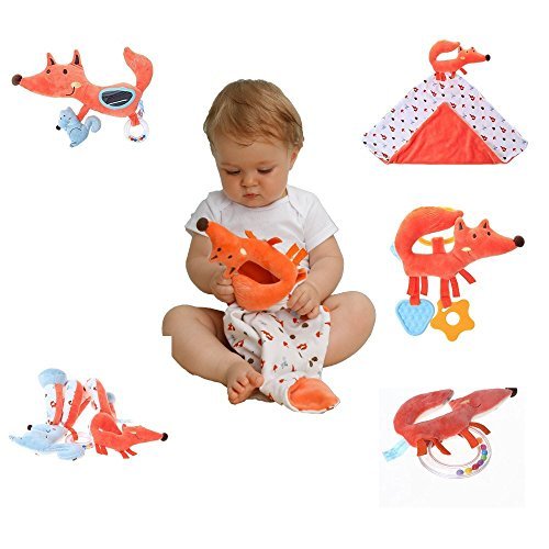 Labebe ベビー用癒しタオル+スピンおもちゃセット 赤ちゃんのおしゃぶりぬいぐるみおもちゃ 歯がため付き 幼児のクリエイティブな誕生日プレゼントとしてもオススメ! - 1個ブルーリス+4個オレンジフォックス 5個セット