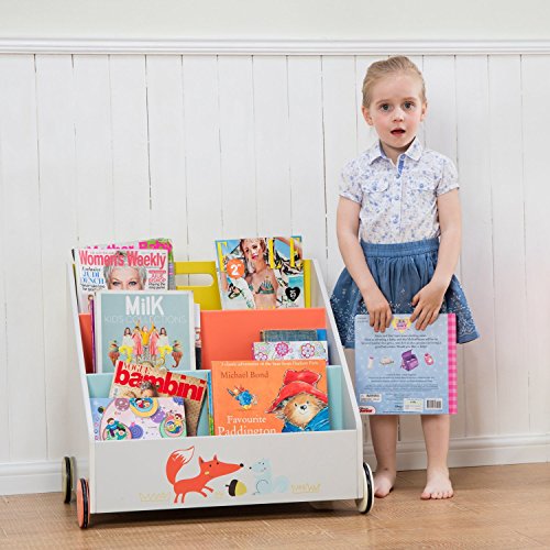 Labebe キッズソリッドウッドブックシェルフ ベビープッシュ&プル本棚 - ホワイトフォックス