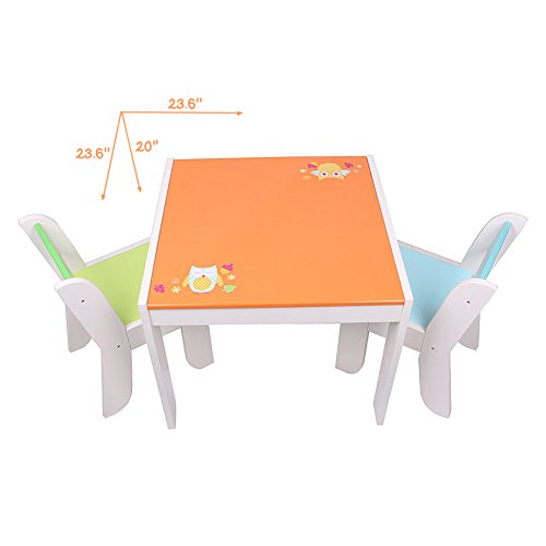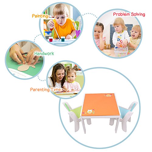Labebe キッズ天然ウッドテーブル&チェアセット 1-5歳の子供用絵画・読書・リビング学習・グループプレーにピッタリ オレンジフクロウ