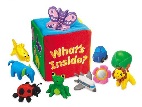 Little ones can't wait to get their hands inside this adorable box...and find out exactly what's inside! The soft, machine-washable box is packed with 10 different sensory objects for kids to feel and explore-like a pretty butterfly with crinkly wings, a cute lion with a corduroy coat, a shiny frog for tots to squeak and more. Plus, a big 4" opening on top makes it extra-easy for tots to reach right in and feel around! Box is 7".
