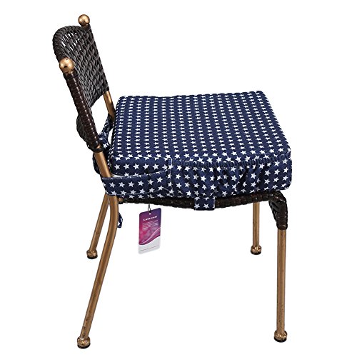 Lalawow お食事クッション ベビー用チェアクッション こどもクッション 椅子クッション 星柄 ポケット付き (ブルー)