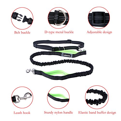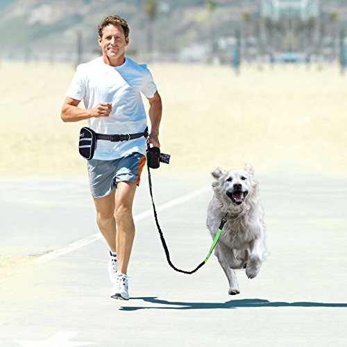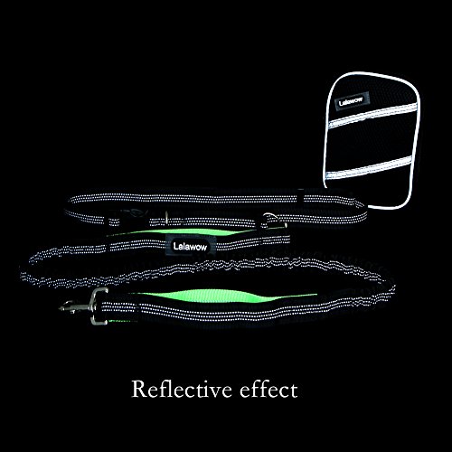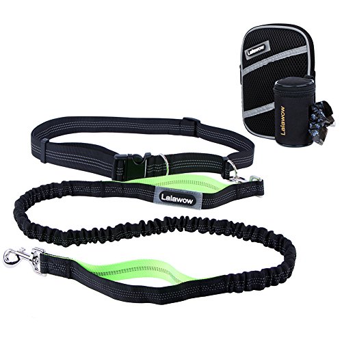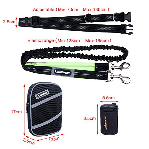Lalawow 犬 リード 伸縮 リーシュ ハンズフリー 夜光効果 ウエストベルト 散歩 大容量ウエストバッグ+ゴミケース+ゴミ袋15枚付き (グリーン)