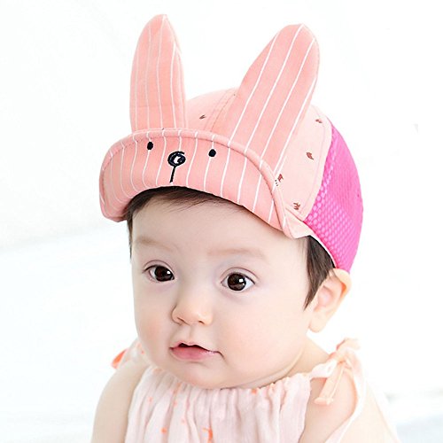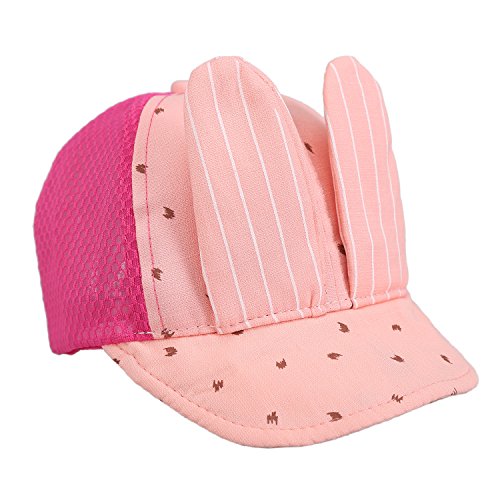 Lalawow ベビー帽子 赤ちゃん用 コットン uvカット かわいい うさぎ つば付き (ピンク)