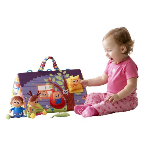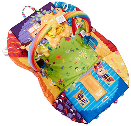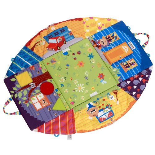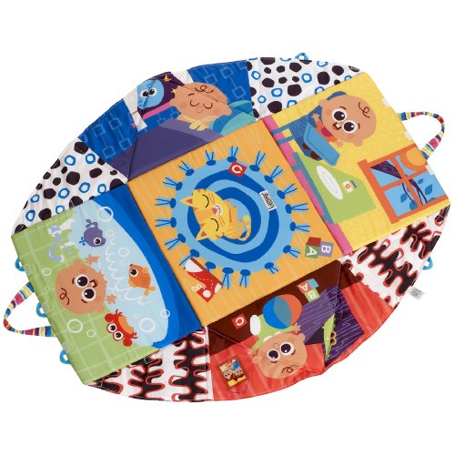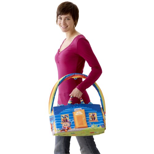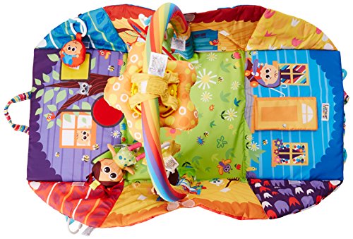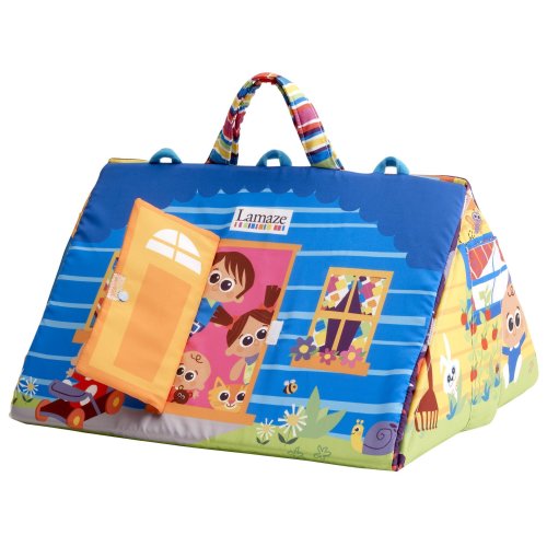 Lamaze Play House Gym grows with baby. The gym has play in all three developmental stages: stage 1 (0 months+) tummy time and lay & play, Stage 2 (6 months+) sit & play and stage 3 (9 months+) peek-a-boo and matching games! A double sided mat provides twice the play time fun. The cute boy and girl dolls promote imaginative role play. There is a Tummy Time mirror for self-discovery and a baby activated sun with lights and music, which is perfect for visual tracking. The sun has two music modes: baby activated or continuous play. It can also be attached to a stroller bar for on-the-go fun. The rattle, crinkle, and squeaky soft shapes make learning colors and shapes fun. The gym folds for easy storage and portability. Requires 3 x AAA Batteries (not included). Lamaze toys encourage early development of the senses, spark creativity and introduce problem-solving skills. Working with child development experts, Lamaze creates toys that delight babies at each stage: Early Discoverers (0 months+), Curious Explorers (6 months+) and Creative Inventors (9 months+).
