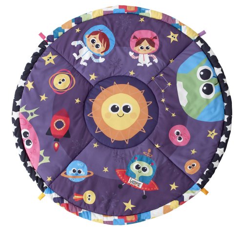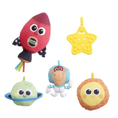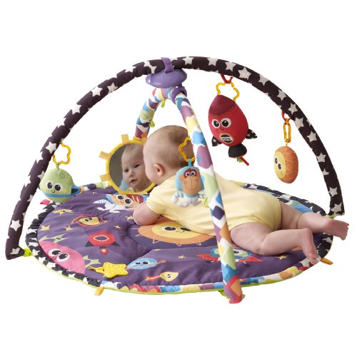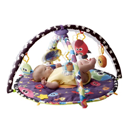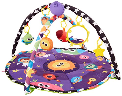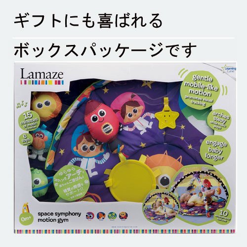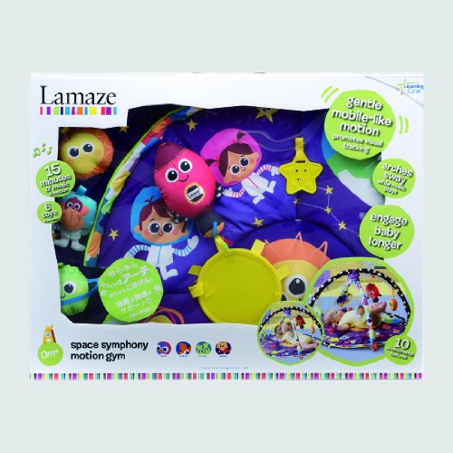 Turn your activity gym into a life size mobile. This colorful, round Lamaze Space Symphony Motion Play Gym features arms that suspend and ?magically? move above baby, bringing the toys to life while promoting visual tracking. Featuring fun cosmic-themed toys and music. Baby?s favourite toys can be attached to the play mat for tummy time play.The creative force behind hundreds of award-winning toys, Learning Curve created the Lamaze Infant Development System by working in tandem with parents, babies, and childhood experts. Learning Curve understands that what matters most to parents is keeping their children healthy, happy, and safe. The company's goal is to help parents do just that by offering products for every stage of a child's development, from feeding to playing to sleeping. Learning Curve's thoroughly researched developmental toys engage children, and provide parents with peace of mind. And their care, safety, feeding and soothing products give you solutions to day-to-day needs at mealtime, bedtime, at home and on-the-go.The Lamaze Infant Development System guides you through three key stages of your baby's development. Lamaze toys grow with babies. Toys are enjoyed in new ways as the months go by.With every Lamaze Play & Grow toy you give, you help baby to see: bright contrasting colours and patterns stimulate vision, hear: rattles, squeaks and crinkles develop auditory senses, touch: different textures to grip and grab refine motor skills, imagine: Lovable characters inspire pretend play ad enhance social skills.