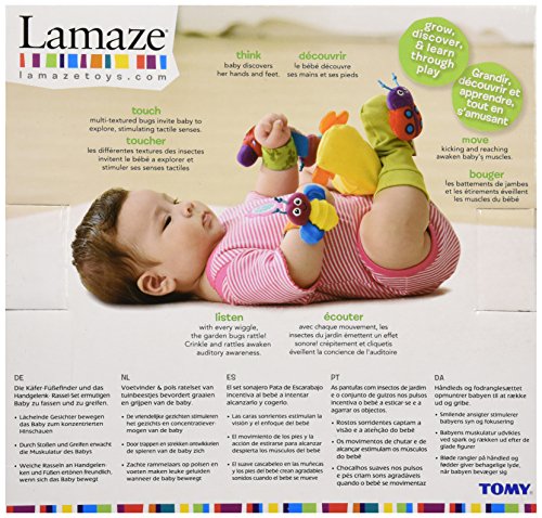 The Lamaze Gardenbug Foot Finders and Wrist Rattles are a great way to start your baby's development. These comfortable rattles are easy to wear, stimulating and inspiring your baby, encouraging discovery, and rewarding exploration. The innovative wrist rattles and foot finders fit comfortably on baby's wrists and ankles; their bright colours, cute faces, and enchanting noises will have baby searching for their hands and feet. The Gardenbug Foot Finders and Wrist Rattles are fully machine-washable, ensuring the health and safety of your baby without extra work for you.