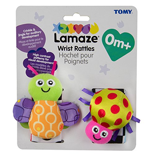 The Lamaze High Contrast Wrist Rattles are stimulating, colourful wrist rattles with plenty of activities for baby. Suitable from birth, the bright contrasting colours and patterns of the rattles help to stimulate baby's vision. The rattles, squeaks, and crinkles encourage the development of their auditory senses. These cute rattles encourage baby to reach, grab and kick, awakening muscles in the limbs, while the different textures to grip and grab help refine motor skills.