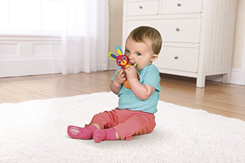 Color:Bunny Little Grip Rattle Bunny from Lamaze loves to shake and wiggle about! Perched on a rattling carrot that fits perfectly into your baby’s hand, this bunny is packed with features that will prompt play and promote development. Featuring contrasting colored ears and happy eyes with a big smile to engage with baby. Made of soft, durable plush with multiple fabrics to explore, plus a soft teething carrot leaf. Lamaze inspires daily discoveries through toys created with delightful surprises that encourage baby to learn while playing.